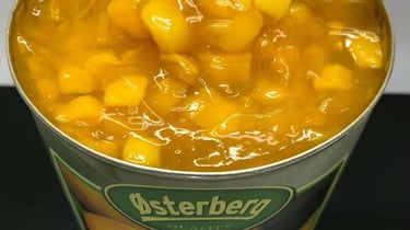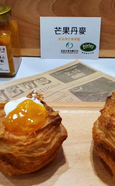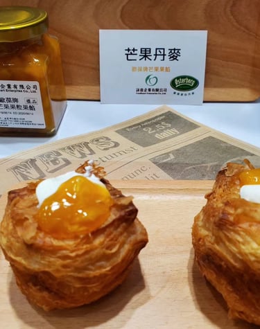 芒果耐烘烤焙果粒餡,急速冷凍芒果粒製造保色保鮮, 無防腐劑添加為其最大特色, 耐烤色澤穩定, 熱帶水果風味, 具備脆感芒果顆粒咬感,