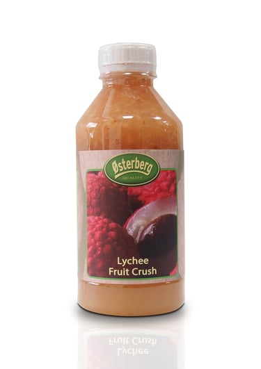 荔枝果粒果漿帶有熱帶水果香氣及清香,堅持以蔗糖方式進行加工果醬處理,一公升PET包裝,1.3K總重,採用急速冷凍加工保有相當風味及果肉脆度,控制果肉內殺菁速度及發酵味道,讓消費者嘗到水果果肉的新鮮感。